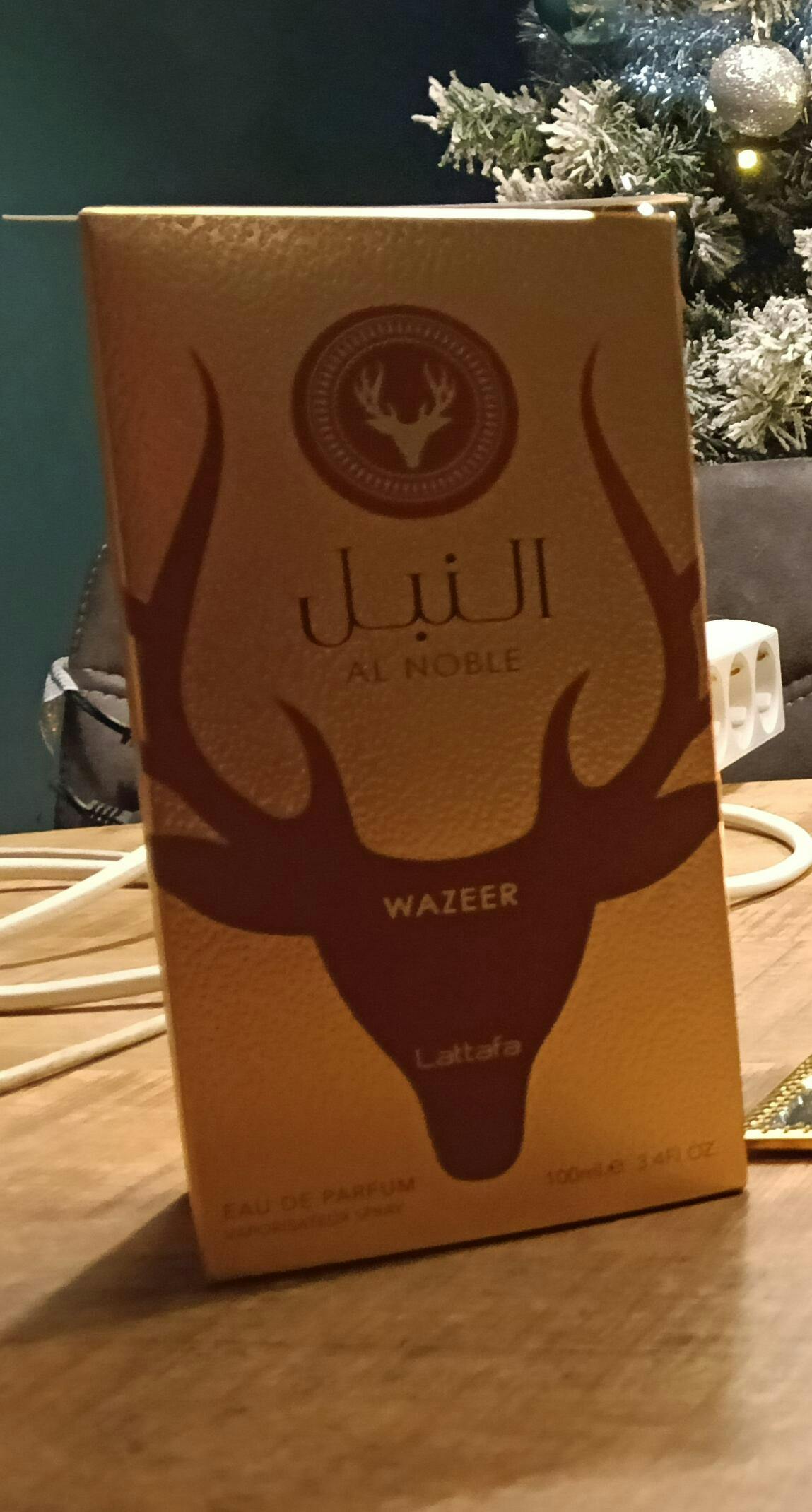Wazeer uit de Al Noble collectie van Lattafa is een weelderige en verleidelijke geur die luxe en zoetheid perfect combineert. De geur opent met een verfrissende mix van munt, sinaasappel, bergamot en jeneverbes, die een sprankelende en energieke start biedt. In het hart ontvouwen zich decadente noten van chocolade, karamel, peer, framboos en iris, die een onweerstaanbaar zoete en fruitige diepte creëren. De basis wordt gevormd door een rijke mix van amber, vanille, sandelhout, ceder, musk en vetiver, wat zorgt voor een warme, romige en langdurige finish. Wazeer is de perfecte keuze voor wie op zoek is naar een geur die zowel verleidelijk als verfijnd is.